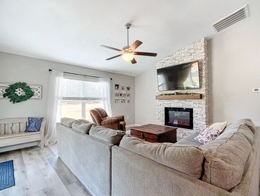 Price Improvement! Welcome to your HGTV-inspired dream home in the neighborhood of Rolling Hills! This 3 bedroom 2 bath + office newer home sits on a 1.86 acre oversized corner lot. Step onto the tastefully chosen vinyl plank flooring that flows throughout the main living areas, complemented by natural lighting that fills every corner. The eat-in kitchen features shaker style cabinets, granite countertops, stainless steel appliances and a generous pantry. The spacious living room with cathedral ceilings and a stunning stone fireplace with distressed wood floating mantel makes for a cozy night in. Have your pick of the formal dining area or the large back lanai to gather with your guests. Two bedrooms boast custom accent walls, bringing character and warmth into the space. The backyard is a peaceful retreat with plenty of room for a future pool and detached garage/shop. Property is fully fenced offering a safe haven for little ones or furry friends to roam and play. Located 14 minutes from the World Equestrian Center, 20 minutes from Rainbow Springs and 18 minutes to I-75 for an easy commute. Schedule a private showing today!